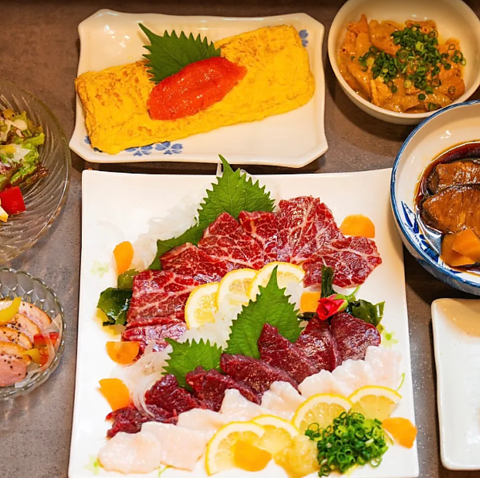 新鮮な馬刺しや刺身から手間をかけた一品料理まで充実の品揃え。満足度の高い本格派の味わいを楽しめます。
