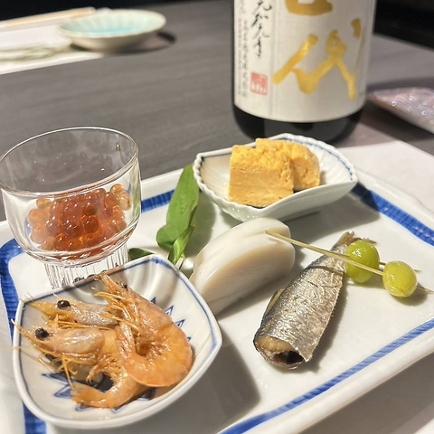 鮮度抜群の旬のお造り、熟練の技で魚の旨味を凝縮したかぶと煮やあら炊きなど、お酒と相性の良い和料理を豊富にご用意しております。活車海老は、塩焼きやキャビア乗せで贅沢に堪能。さらに、黒毛和牛や伊勢赤どりを使った肉料理も評判です◎和と洋、海と山の幸が織りなす逸品料理を最高の形でご提案し、印象に残る美食体験をお届けいたします。
