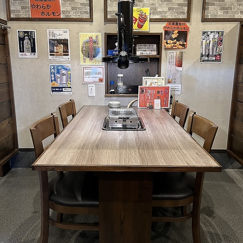 【半個室テーブル席】周りの視線を気にせず、ゆったりと焼肉を楽しめる4名様用の半個室をご用意。適度なプライベート空間で、親しいご友人やご家族と会話を弾ませながら、リラックスして心ゆくまでお食事をご堪能ください。