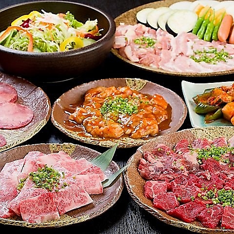 11品の焼肉メニューとサラダ、おかわり自由のライスが付いてこの価格!ボリューム満点で満足していただけること間違いなしのコースです。各種宴会にも嬉しい飲み放題は生ビール・酎ハイ・焼酎・ソフトドリンクなど30種類以上!※食べ放題ではありません。
