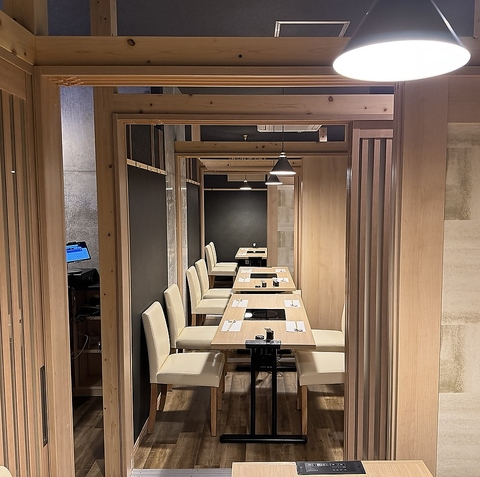 【完全個室をご用意】4名個室、6名個室をご用意しております。最大16名で個室利用が可能です。様々な用途で使える個室席は、カジュアルな宴会から、接待、記念日などプレミアムな会まで幅広くご利用いただけます。