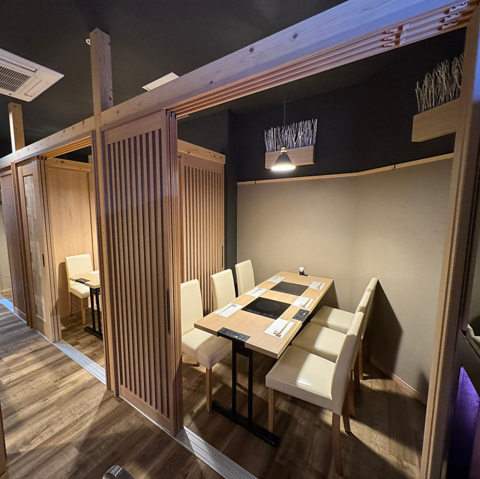 【完全個室をご用意】4名個室、6名個室をご用意しております。最大16名で個室利用が可能です。様々な用途で使える個室席は、カジュアルな宴会から、接待、記念日などプレミアムな会まで幅広くご利用いただけます。