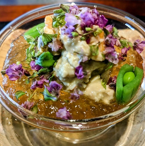 お料理構成の半分以上に本枯節をカンナで削りおだしにした体に優しいお料理を目指しおつくり致しております。日本料理の香りを感じていただけたら幸いでございます。