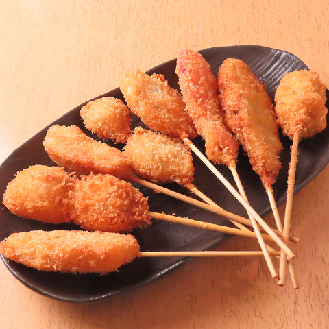 当店の串カツは、串カツ発祥の地と言われている大阪風の串カツです!本場の味がお手軽にご堪能いただけます♪お好きな串を一本からご注文いただけますので、ぜひお試しください!
