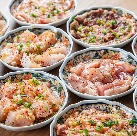 鹿児島「さつま知覧どり」、鳥取「大山がいなどり」、三重「伊勢赤どり」、宮崎・鹿児島「地頭鶏」など、全国から選び抜いたブランド鶏を使用。七輪で焼き上げる鶏焼きは、皮はパリッと、身はジューシーに。鶏本来の旨みをそのまま味わえます。こだわりの銘柄鶏ならではの食感と味の違いを、ぜひ食べ比べてみてください。