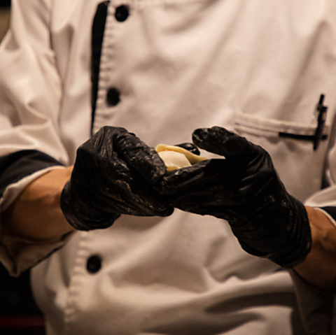 目の前で餃子が包まれるライブ感は圧巻!調理の音や香りを間近で楽しみながら、会話も弾む特別なひとときを