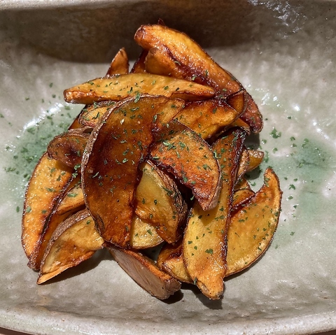 雪の中でじっくりと熟成させた「インカのめざめ」を使用した、こだわりのフライドポテトです。低温で熟成させることで糖度が飛躍的にアップし、まるでサツマイモや栗のような濃厚な甘みとホクホク感を実現しました♪餃子の合間の箸休めとしてはもちろん、デザート感覚でも楽しめる一皿は、塩気と甘みのバランスが絶妙です◎