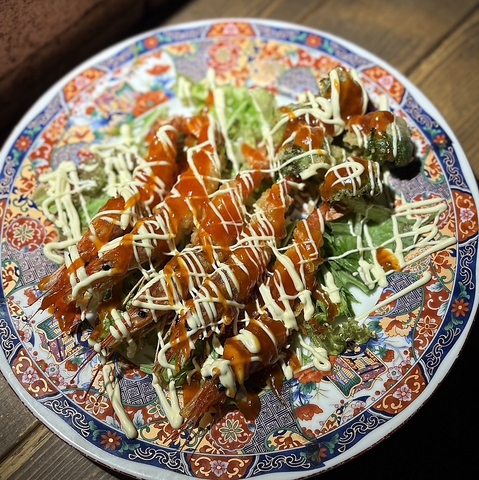 その日に仕入れた一番良い状態の鮮魚を、豪快な炎で一気に焼き上げる自慢の藁焼きです。香ばしい藁の香りが食欲をそそり、魚本来の旨味をギュッと閉じ込めています。味の決め手は、素材の良さを引き立てる当店特製のにんにく塩!その日、その時ならではの贅沢な旬の味わいを、ぜひ心ゆくまでお楽しみください。