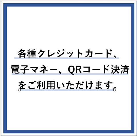 各種クレジットカード、電子マネー、QRコード決済をご利用いただけます。