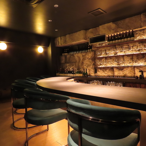 店内は、上質な照明と落ち着いたトーンで統一され、洗練された大人の雰囲気を演出しております。高級感あふれる内装は、日常の喧騒を忘れさせてくれる非日常の空間です。大切な方とのデートや、取引先との接待はもちろん、カウンター席で静かにグラスを傾けるおひとり様でのご利用にも最適です。ワンランク上のひとときをお過ごしください。