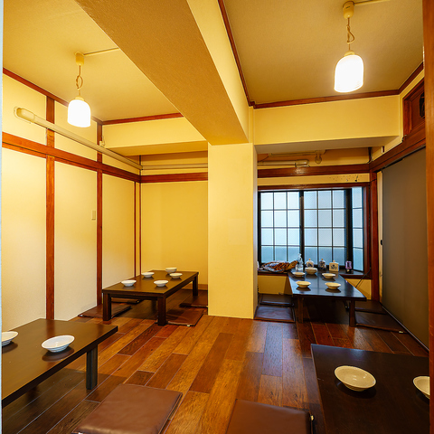 木目調の明るく落ち着いた雰囲気の店内に、ゆったりとしたテーブル席を完備。会社の飲み会、歓送迎会、同窓会など、大人数での集まりにぜひご利用ください。「団体利用を楽しめるお店」として、幹事様も安心して計画できるよう、精一杯サポートさせていただきます。貸切予約もお気軽にご相談ください♪