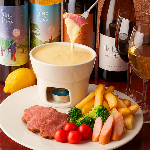 とろ~り濃厚チーズが絶品の「チーズフォンデュコース」!!熟成ローストビーフやほくほくポテト、新鮮野菜等多種の食材をご用意!!当店こだわりのチーズによく絡めてお召し上がりください。他にも「特製マルゲリータピッツァ」、「バジル香るトマトのカプレーゼ」等大好評のチーズ料理を存分にお楽しみいただけます。