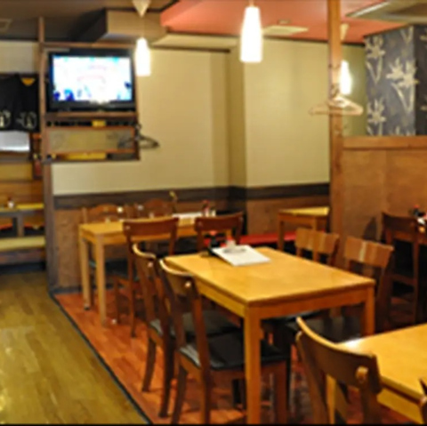 仕事帰りや友達との集まりに、気軽に使えるテーブル席をご用意!広々とした空間は、ゆったりと座れて居心地の良さ抜群☆おひとり様や少人数はもちろん、最大25名様まで着席が可能です。人数に合わせて席の配置も変えられるから、サークルや仲間とのイベントにもぴったり♪どんなシーンでも気楽にお食事が楽しめる、温かい雰囲気の内観です★