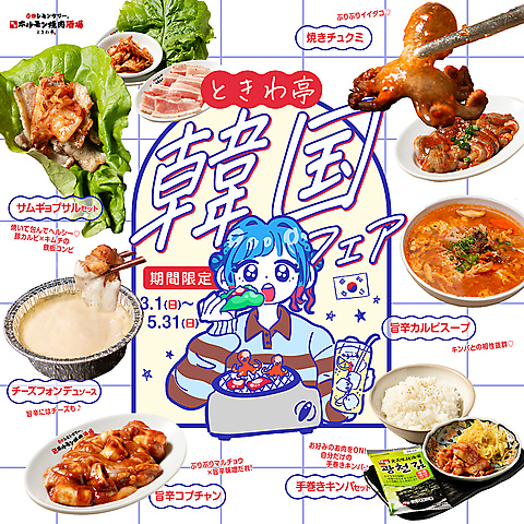 ときわ亭定番メニューから黒毛和牛焼肉までなんと無制限で楽しめる食べ放題コースが登場!!宴会にぜひ♪
