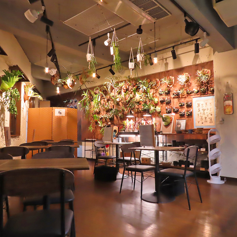 【たくさんの植物に囲まれた幸せ空間】ボタニカルな店内で、ゆったりとした時間をお過ごしください。