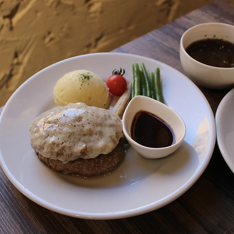 当店自慢は、オーガニックを追求したハンバーグ。厳選した食材のみを使用した心と体にやさしい一皿です。