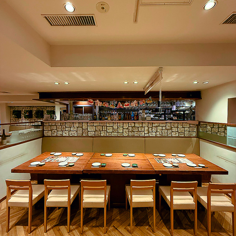 開放感と上質さが調和した空間は、大人のお客様に心からリラックスしていただける居心地の良さを追求しております◎テーブル席は広々と配置されており、ゆったりとお食事とお会話を楽しめるのが魅力です。