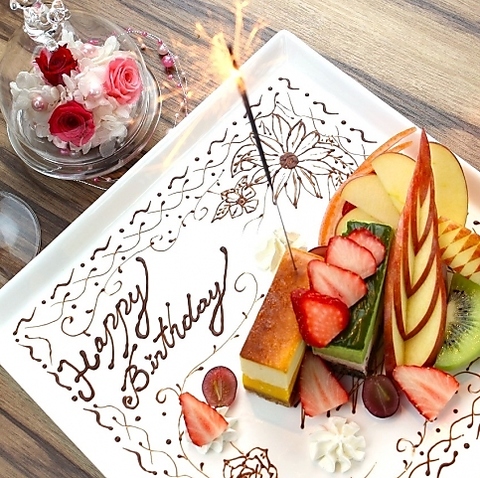 誕生日や記念日など、各種お祝いにバースデープレートをご用意可能です。さりげないお祝いから特別な日の食事まで、シーンに合わせて対応いたします。ご希望はご予約時にお伝えください。