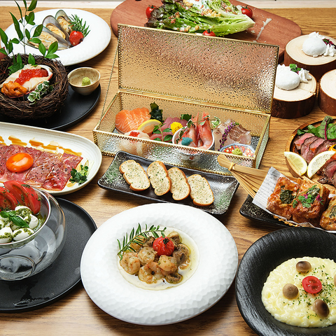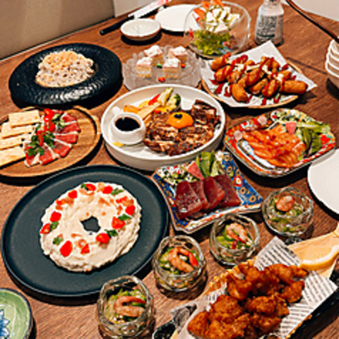 宴会コースは種類豊富にご用意。ご予算や人数に合わせて選べるため、歓送迎会や会社の集まり、女子会など幅広いシーンに対応可能。2時間飲み放題1500円、ワイン飲み放題980円など用途に合わせたプランが揃っています。