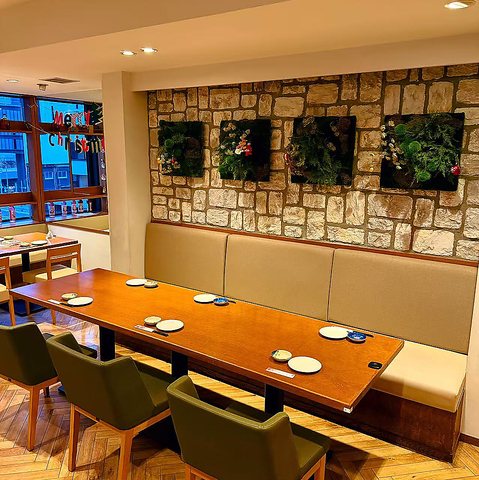 明るく清潔感があり、随所に配置されたグリーンが心地よいアクセントを加える落ち着いた店内です♪上質な会食や大切な接待、大人の女子会、ちょっと特別な夜など、様々なシーンでご利用いただける空間づくりにこだわっております。