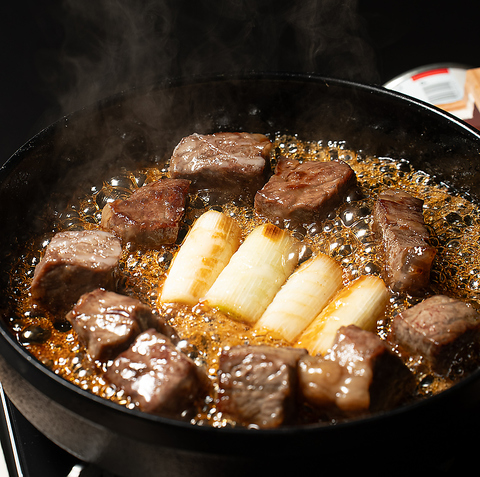 すき焼きの元祖とされる焼鉄(やきがね)という味噌仕立ての牛鍋などが特徴だった江戸肉割烹「さゝや」。その伝統と技を受け継ぎ、素材選びから火入れ、味の重ね方に至るまで一切の妥協なく仕上げています。南部鉄器の鍋で丁寧に焼き上げる焼鉄は、牛肉本来の旨みと味噌のコクが溶け合う一品。浅草という歴史ある街とともに、当時の食文化を◎