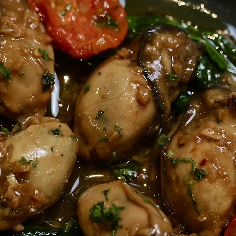 ランチ帯にも注文可能な広島県産牡蠣のオイル漬けや、夜限定のお料理はお酒が進むものばかりです。