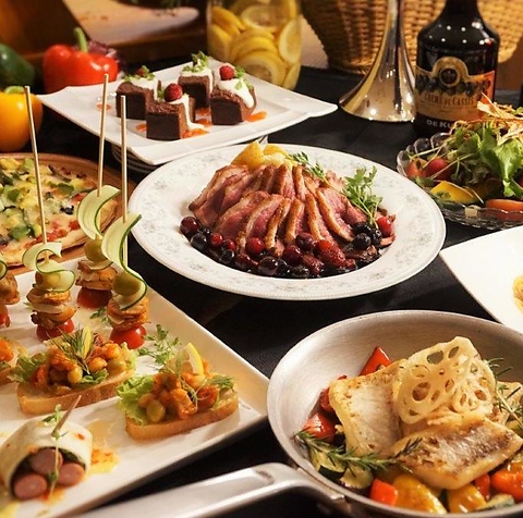 飲放題付コース料理も!見た目も鮮やかなカルパッチョやピンチョス等前菜からメインまでご満足いただけます