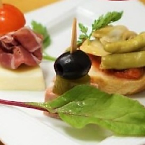 スペイン・マドリード以南の代表的な小皿料理アヒージョをチュロス風にアレンジ!ミックスアヒージョは、エビ、アサリ、タコなどの魚介の旨味と野菜のバランスがマッチした一品です。自家製ガーリックオイルと素材の旨味が溶け出し、バケットに浸して食べるのがおすすめです。海鮮パエリアもおすすめです。