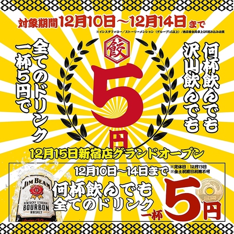 プレオープン期間限定!全ドリンク何杯飲んでも1杯5円★☆