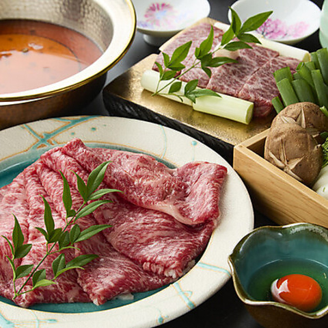 贅の極み、A5ランクの神戸牛クラシタを使用した特上コースです。きめ細やかで上品な旨みを持つクラシタを、昔ながらの割り下と特別な卵で堪能いただけます。