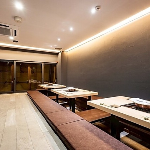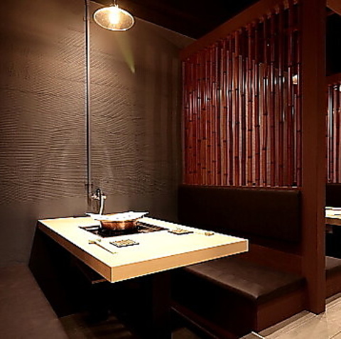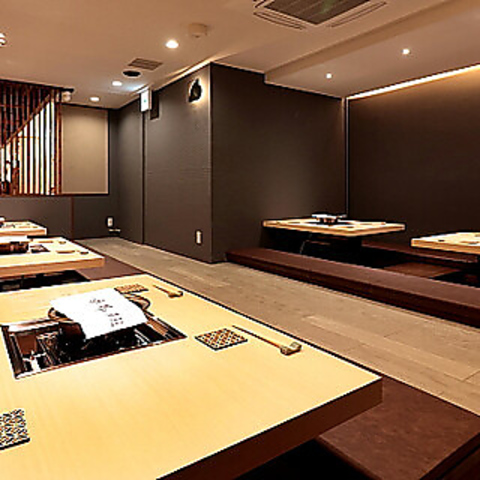 和モダンの洗練された内装でまとめられた店内は、シンプルで清潔感のある落ち着いた空間です。オープンキッチン前のカウンター席では、調理のライブ感を愉しむことができ、特別な時間を提供いたします◎デートや観光など、上質な雰囲気で本格すき焼きを味わいたい方に最適です。