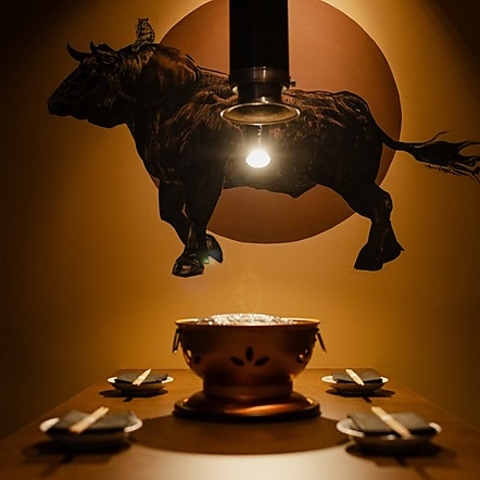 『肉の匠 ひうち』の離れである当店。店内は間接照明と木の温もりが調和した落ち着きあるモダンで温かみのある空間です。肩ひじ張らずお料理をお楽しみいただけます。少人数で利用できる完全個室を中心に様々なお席をご用意しております。