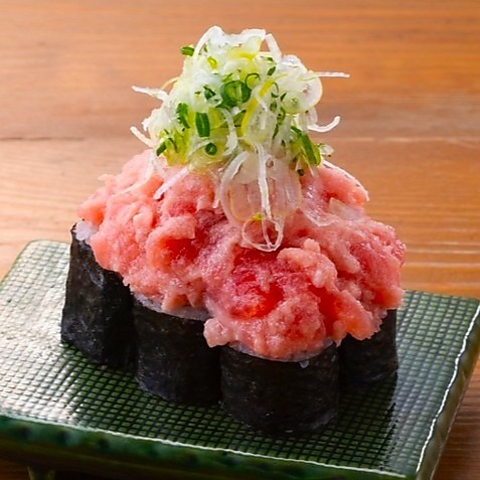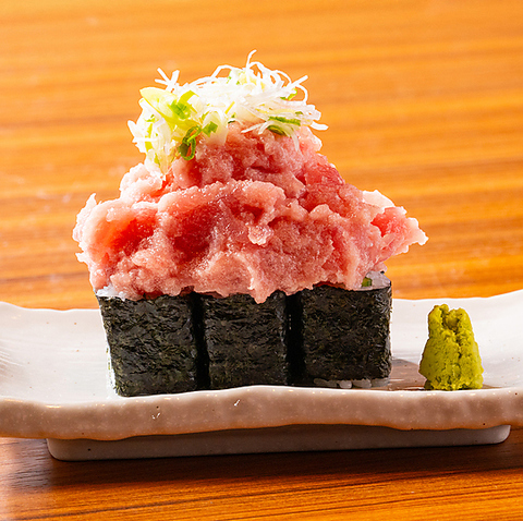 とろける美味しさ。かっぱ巻の上にたっぷりのネギトロをのせ、口に入れた瞬間に広がる旨みとまろやかさを存分に味わえます。新鮮なネギトロの風味とシャリのほどよい酸味が絶妙に絡み合い、一口ごとに味わいの変化を楽しめます。見た目も華やかで、食べるたびに幸せを感じられること間違いなし。家族や友人とシェアして楽しむのもおすすめです。