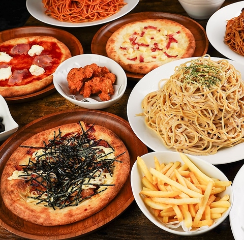 友人や恋人と!全12種のピザやメガ盛りパスタ、定番おつまみも充実。持ち込みもOKで自由な時間を満喫♪