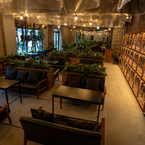 【Wi-Fi・電源完備】カフェ×バー「C.STAND」では、友人とゆったり寛ぎながら会話を楽しむのにぴったりなソファー席を多数完備しております。店内は間接照明が灯る大人の雰囲気…。つい、長居したくなるような居心地の良い空間をお楽しみください。