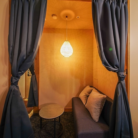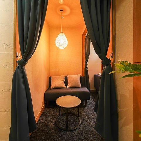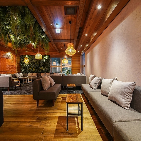 【Wi-Fi・電源完備】シーシャ×バー「C.STAND」では、友人とゆったり寛ぎながら会話を楽しむのにぴったりなソファー席を多数完備しております。店内は間接照明が灯る大人の雰囲気…。つい、長居したくなるような居心地の良い空間で、シーシャの味・香りをお楽しみください。※画像は系列店