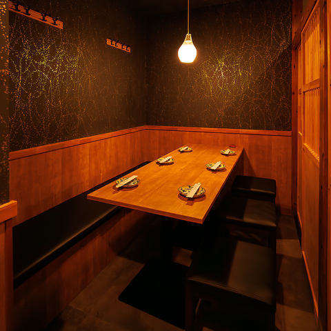 間接照明と和の装飾の数々が洗練された大人な空間を演出しております!扉付き完全個室となっておりますので周りを気にせずお楽しみいただけますよ!当店でゆっくりと羽を伸ばしてご寛ぎくださいませ♪(品川 個室 牛タン 焼き鳥 肉寿司 飲み放題 デート 宴会コース 記念日 接待 宴会)