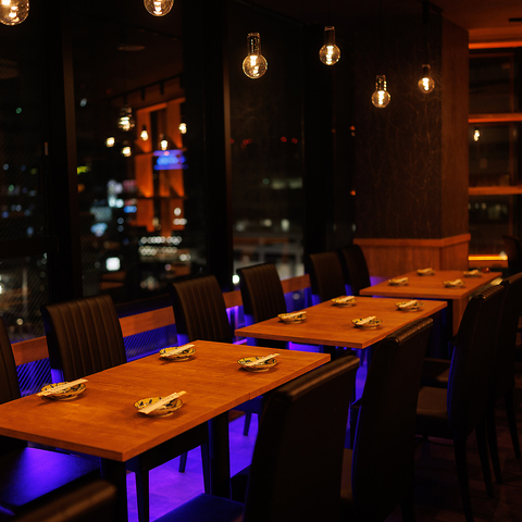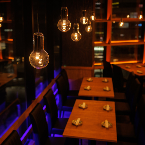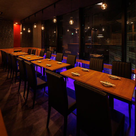 光と影が織り成す上質空間。都会の喧騒を忘れ大人の時間をゆったり堪能できる空間をご用意!2名~6名の少人数様向けのテーブル席などゆったりと優雅なお時間をお過ごし頂けるこちらのお席は、デートをワンランク上の仕上がりに!サプライズ演出できるデザートプレートもご用意しております!!