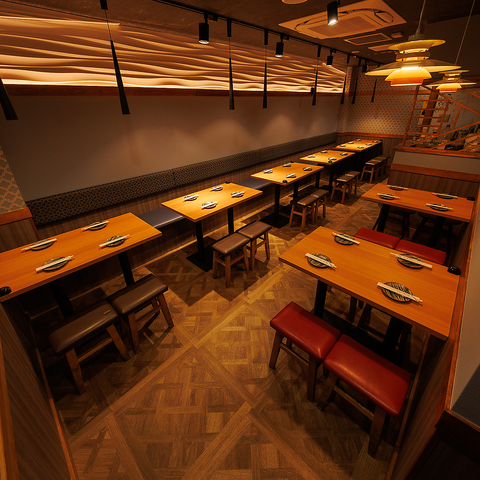 店内は情緒ある素敵な空間となっております。デートや宴会様々なシーンでご利用ください。他の居酒屋でとちょっと違った大人な雰囲気の居酒屋。お酒も数多くご用意させていただいておりますので、ゆっくりとお楽しみになられたいお客にはピッタリな空間です。