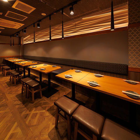 間接照明と和の装飾の数々が洗練された大人な空間を演出しております!当店でゆっくりと羽を伸ばしてご寛ぎくださいませ♪(牛タン 焼き鳥 肉寿司 飲み放題 デート 宴会コース 記念日 接待 宴会)
