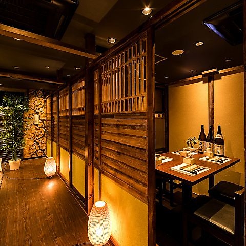 ◆ 2名様~6名様少人数向け◆少人数向けの個室はやさしい照明で落ち着けるお席となっております。プライベート空間で上質なひとときをお過ごしください。飲み会やデートなど多様なシーンにご利用頂けます。