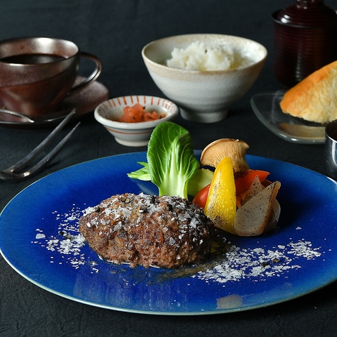 黒毛和牛を100%使用した鉄板ハンバーグは必食の逸品ランチはセットメニューがついて1,980円♪