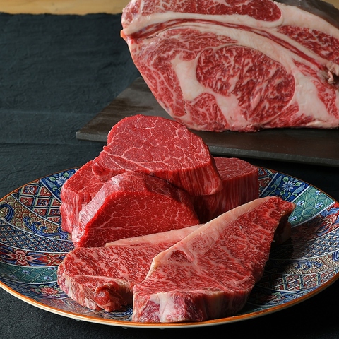 コースはランチ1,980円~/ディナー5,000円~ご用意。メインのステーキは黒毛和牛サーロインステーキ、フィレステーキ、サイコロステーキからご自由にお選びいただき、グラム数も100g,150g,200gでご用意しております。海の幸やハンバーグがセットになった贅沢コースもございます。詳細はコースページをご覧ください。