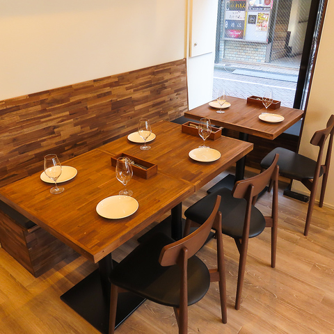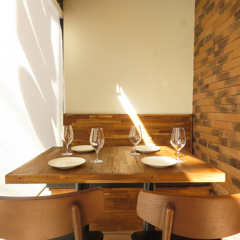 【女子会・記念日等のプライべ―トのご利用に】少しコンパクトながら最大4名様までご利用いただけるお席は、女子会や誕生日のお祝いにぴったり。木目調のテーブルが、落ち着いた雰囲気を演出します。