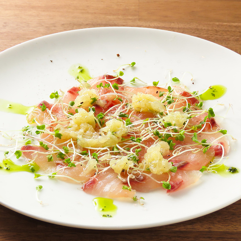 昆布の旨みをほのかにまとわせた、やさしい風味のカルパッチョ