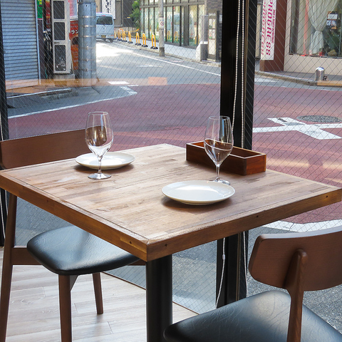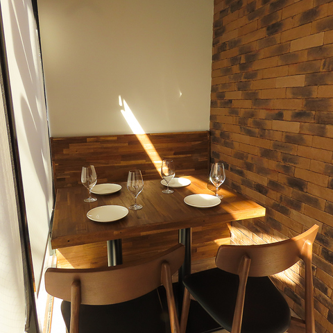 【TOKIORI自慢のわいんと創作和ビストロ料理を◎】窓際の明るい2名席は、自然光が差し込む心地よい空間。カジュアルなデートや記念日ディナーにおすすめです。