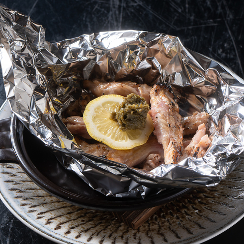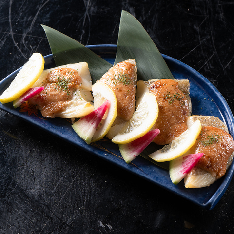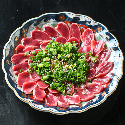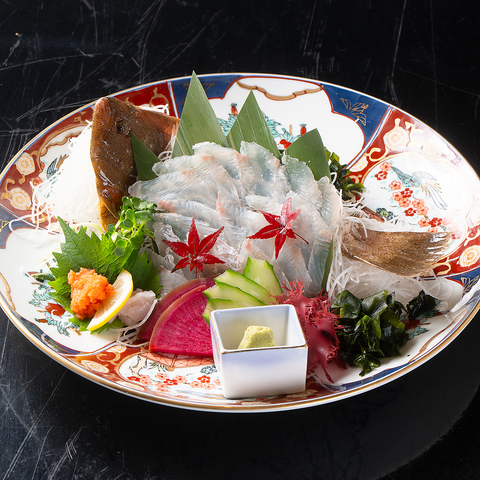 コースに地鶏の盛り合わせが付きます。なぜ生簀屋なのに地鶏?と思われる方も居るかもしれませんが、答えは簡単です。希少な朝引きの日向鶏を毎日欠かさず提供するために、コースに組み込むことで確実に新鮮な在庫を回し、すべてのお客様に最高の状態の日向鶏を味わっていただくようコースでもご提供させていただいております