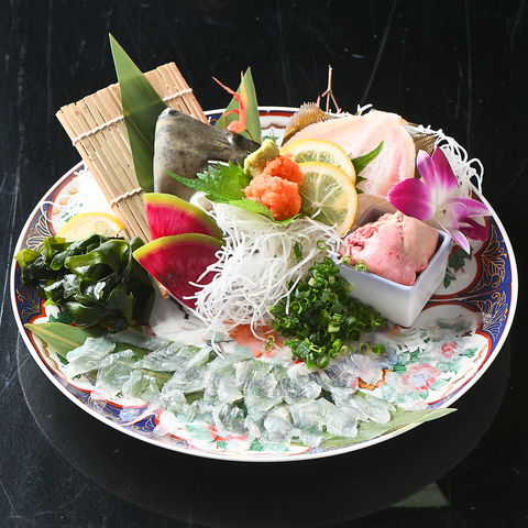 とらふぐ/オコゼ/肝等、猛毒を有する食材も、免許保有の板長さんが丁寧に調理しますのでご安心を!※最近は安価に冷凍身欠ふぐ(調理済)などを使い安価に提供されているお店が多いですが、うちは手仕事の薄造りですよ!