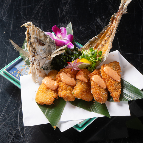 夏は糸島半島野北漁港より岩牡蠣を、冬は平戸市薄化漁港より真牡蠣を入荷して、毎日季節の牡蠣を楽しめます。まずは刺身で、そして焼き、フライとお楽しみください!どのシーズンもすべて、既製品や業者を通さずに、自社活魚車で生かしたまま仕入れて、店内の牡蠣専用生簀で綺麗に一日砂を吐かせてからご提供しております!