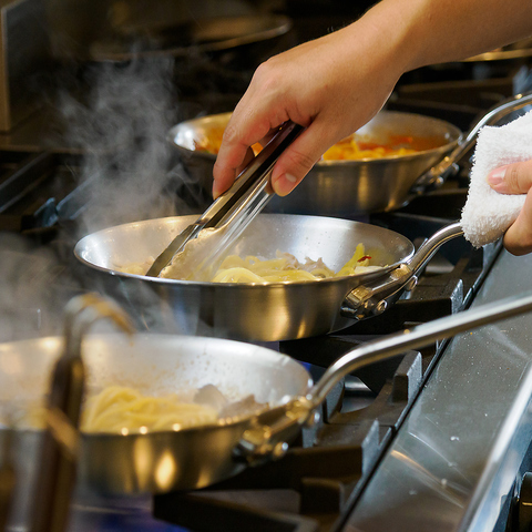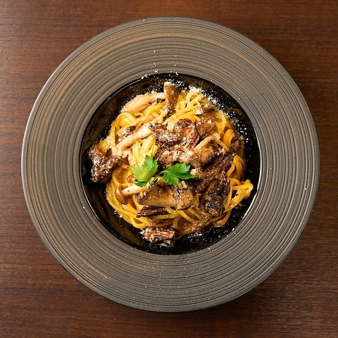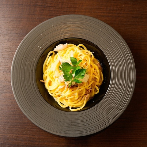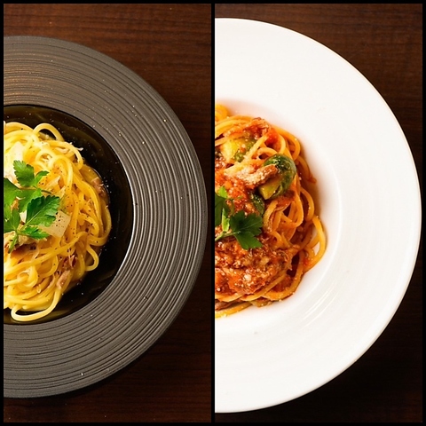 淡路島の製麺所から仕入れる卵型の生パスタは、通常よりもっちりとした食感が魅力。ソースや具材には季節ごとの野菜を合わせ、素材の旨みを引き立てる一皿に仕上げています。すべてのパスタを生麺で提供しており、噛むほどに広がる豊かな風味が楽しめます。季節の移ろいを感じながら味わえる、当店自慢の逸品です。